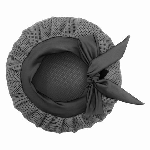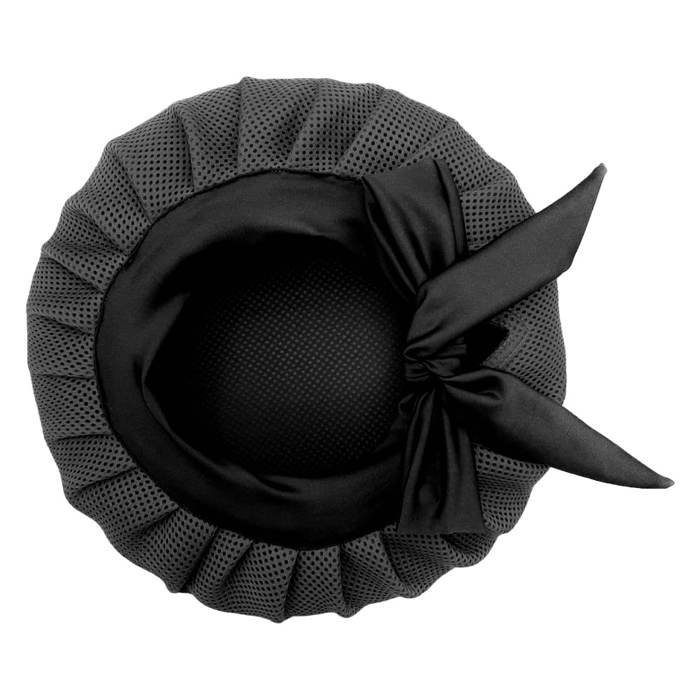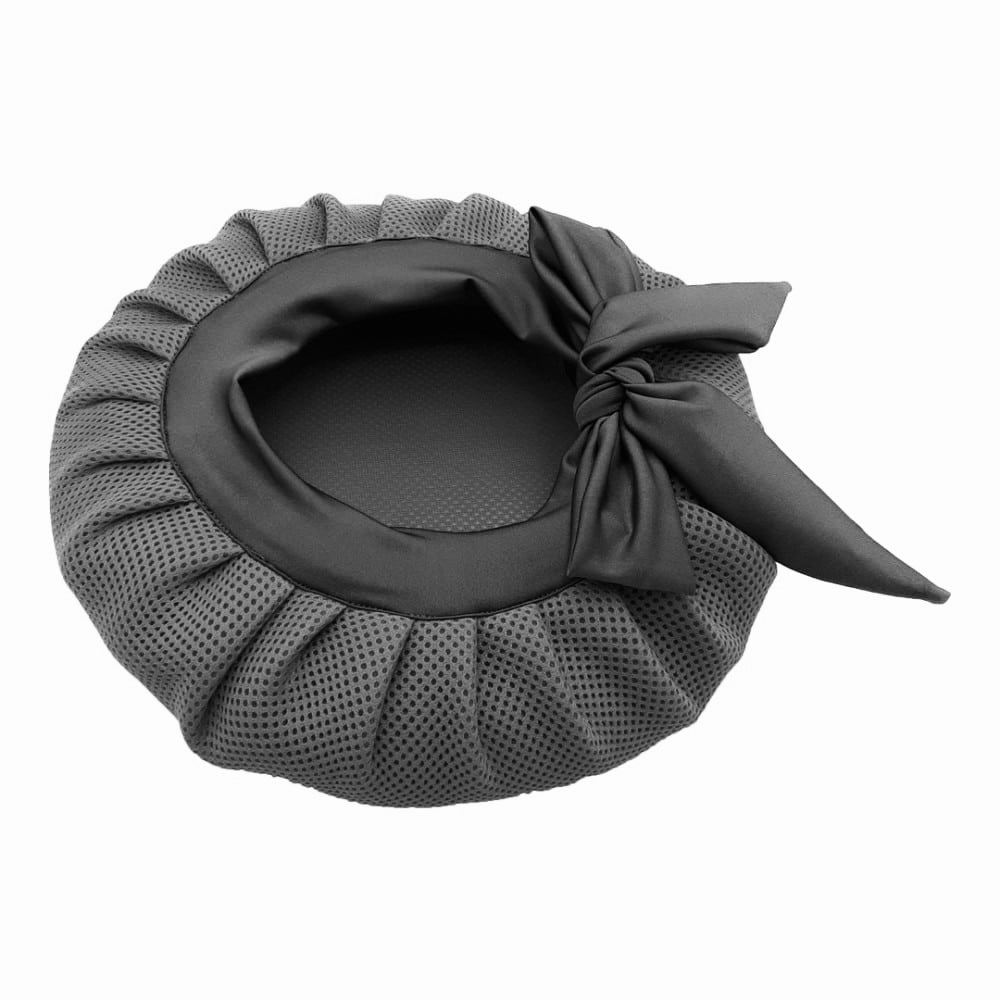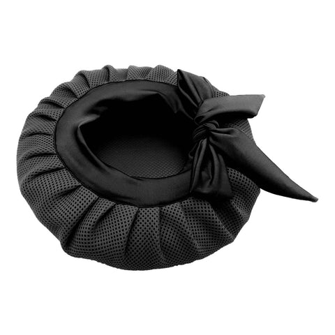 A bonnet made from high quality double layered fused net that you can wear on your freshly styled hair to blow dry/air dry your hair while the curls are scrunched.